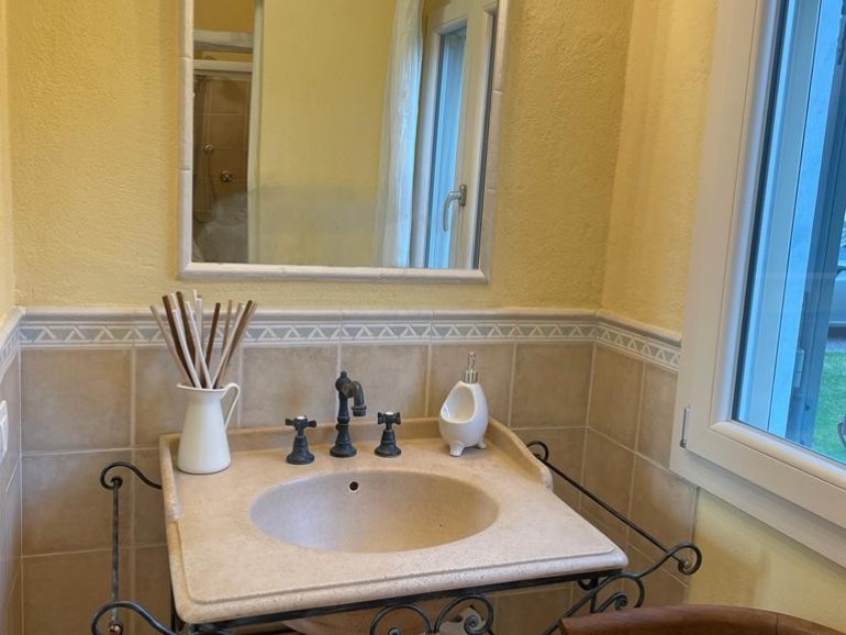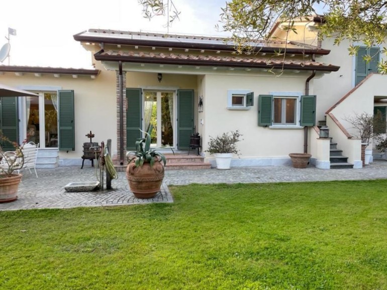 Comune di Pietrasanta - Vicinanze Forte dei Marmi - A 2500 mt dal mare, in contesto silenzioso e contornato da oliveti, elegante villa singola elevata quasi completamente al solo piano terra con camera in suite al piano primo. La villa ben tenuta e con ottime rifiniture, dispone al piano terra di doppio ingresso dai due lati principali dell'unità, ingresso-soggiorno-pranzo con cucinotto, 1 camera matrimoniale, antibagno con lavabo, bagno con doccia, altra camera matrimoniale con accesso al giardino e bagno doccia privato. Piano primo con accesso indipendente dall'esterno con camera matrimoniale con bagno doccia privato. La dependance dispone di due vani attrezzati entrambi con bagno privato. Aria condizionata. Impianto di allarme.Linea internet. Pannelli fotovoltaici e solari.Piscina. vasca idromassaggio. Ampio giardino. 2/3 posti auto. Disponibile per stagione estiva. CIN IT046024C2ZX8ETP8H CIR 046024LTN1646