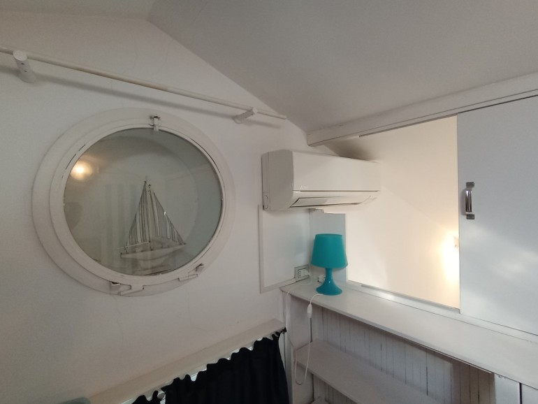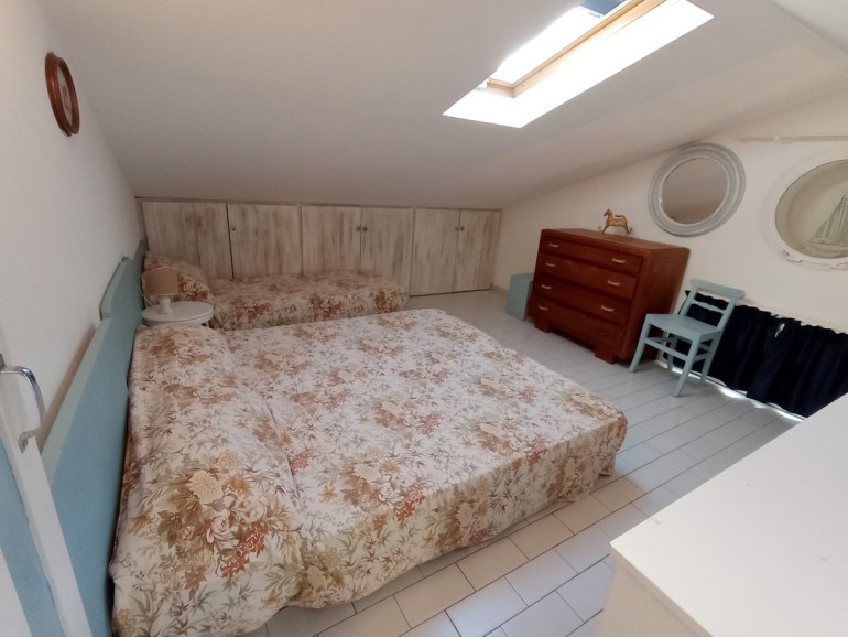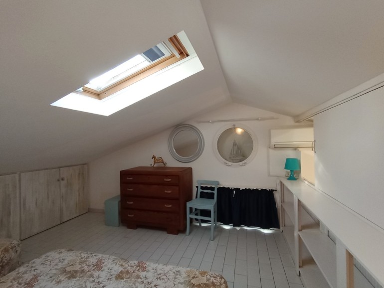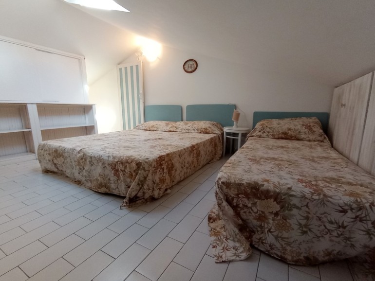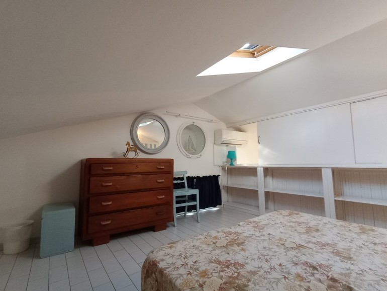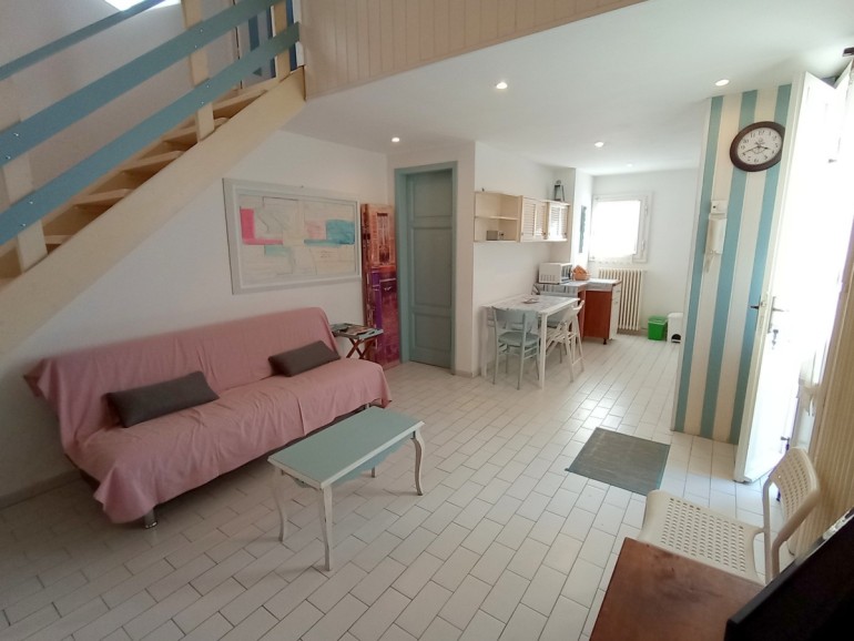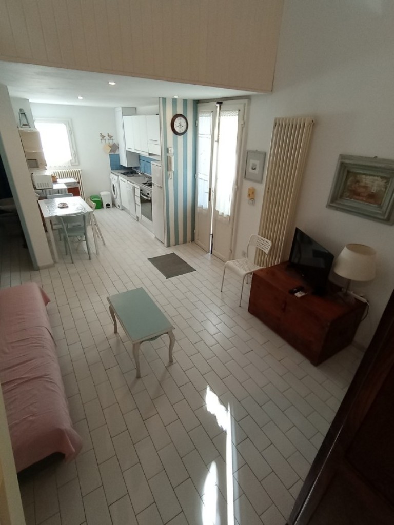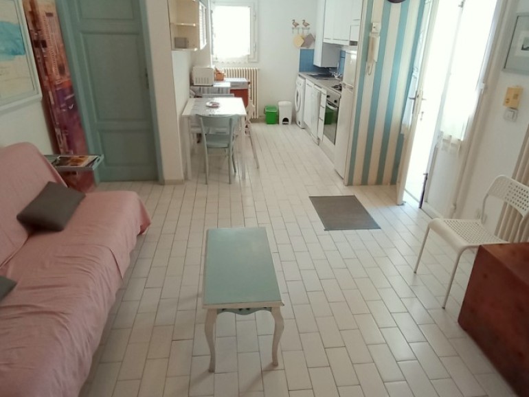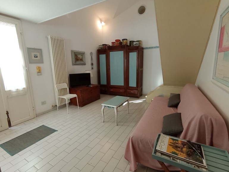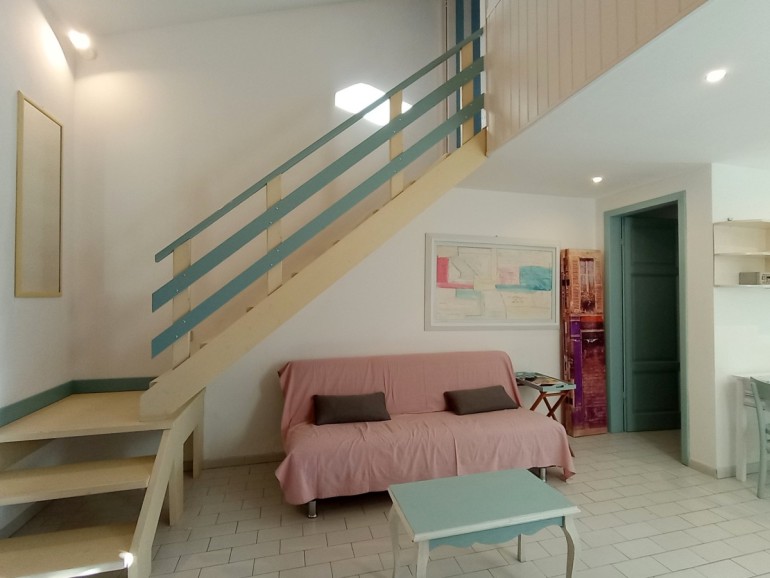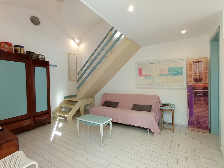 Marina di Pietrasanta - A 150 mt dal viale a mare, in posizione centrale, caratteristico appartamento bilocale piano terra e piano mansardato con aria condizionata. L'unità, attrezzata di spazio esterno per il pranzo, è composta al piano terra da soluzione open space con cucina completa, tavolo per 3/4 persone, zona divano (divano letto) con Tv, bagno con doccia. Piano mansardato : 1 letto matrimoniale, 1 letto singolo. Linea wi fi .Ottime condizioni. Disponibile luglio. CIN IT046024C2AIYNARR2