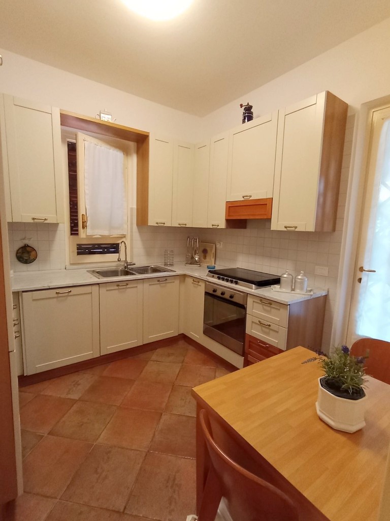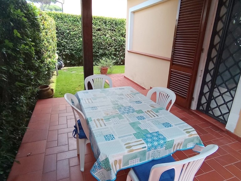 Marina di Pietrasanta - a circa 500 mt dal viale a mare, in tranquillo contesto residenziale, villetta monofamiliare su due livelli fuori terra. L'unità è composta al piano terra da : porticato attrezzato con 2 poltroncine e tavolino,ingresso -pranzo - soggiorno, disimpegno, cucinotto con accesso a veranda attrezzata per il pranzo, 1 servizio. Piano primo : due camere matrimoniali con aria condizionata e balcone a comune, 1 camera singola con pala, 1 bagno con doccia, 1 bagno con vasca. Dependance con lavatrice e pozzetta. 1 posto auto. Linea wifi. Disponibile per stagione estiva. CIN IT046024C22CAFYSY9