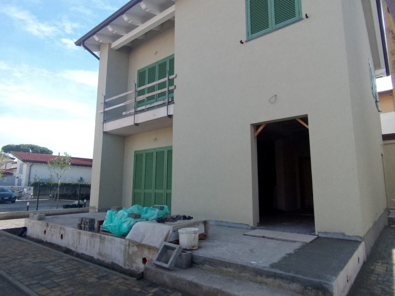 Marina di Pietrasanta - Centrale - A circa 120 mt dal viale a mare, nuova ristrutturazione di villa monofamiliare. L'unità di Mq Lordi 212 , elevata su due livelli fuori terra, dispone al piano terra di ampio ingresso, soggiorno-pranzo con accesso a terrazza di mq 24 sul fronte del fabbricato, cucina con accesso a pergotenda, 1 bagno con doccia, 1 bagno con doccia e zona lavanderia,1 camera doppia con accesso al giardino, rimessa di mq 15,50 con accesso al vano tecnico. Piano primo :camera padronale con bagno e terrazzina privata con vista alpi Apuane, una camera matrimoniale, un bagno con doccia, una camera matrimoniale con bagno privato, disimpegno con accesso ad ampia terrazza sul lato Viareggio. Sottotetto al quale si accede con scala retrattile.Giardino.1 posto auto coperto. 1 posto auto scoperto. Mq commerciali 244. Consegna giugno 2026.