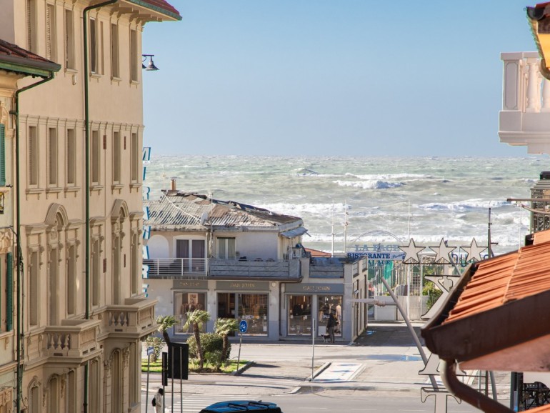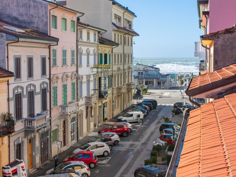 Viareggio Zona passeggiata - In prima fascia mare, a 90 mt dal viale a mare e a pochi passi dalla pineta di ponente, in piccola palazzina finemente ristrutturata e composta di sole 6 unità abitative, grazioso e luminoso appartamento con ottime rifiniture. L'unità, di circa mq 90, posta al piano secondo con ascensore è composta da : ampio ingresso con accesso a terrazzina sul retro, cucinotto attrezzato anche con vano lavanderia, ampia camera matrimoniale con accesso a terrazzina e bagno doccia privato, importante corridoio che conduce sia alla zona giorno esposta a sud con zona cottura e soggiorno-pranzo, sia alla seconda camera matrimoniale e al bagno con doccia. L'appartamento dispone inoltre di 1 posto bici. Termoconvettori caldo/freddo. Caldaia gas. L'unità viene venduta arredata. Rapida disponibilità.Indirizzo orientativo per individuare la zona in cui è collocato l'immobile.