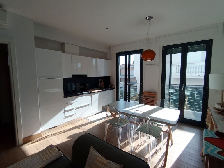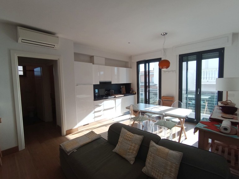 Marina di Pietrasanta località Fiumetto - A circa 80 mt dal viale a mare, in piccolo complesso condominiale di costruzione anno 2006, , appartamento piano primo in ottime condizioni di manutenzione.L'unità è composta da : ingresso su zona giorno in soluzione open space con angolo cottura ed accesso a terrazza, disimpegno/antibagno, camera singola con porta finestra sulla stessa terrazza della zona giorno, bagno con doccia, disimpegno/corridoio, camera matrimoniale con ampia terrazza privata, 1 camera da una piazza e mezzo, bagno con vasca. Aria condizionata. Zanzariere. Impianto di allarme. Serramenti esterni elettrici. Lo stabile dispone di un comodo ascensore. Spazio a comune per alloggio bici.Rapida disponibilità.
