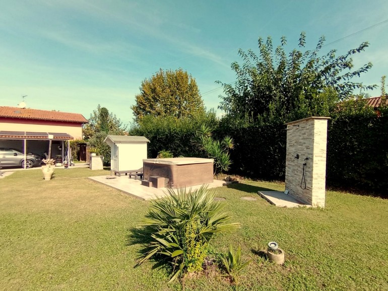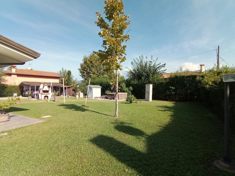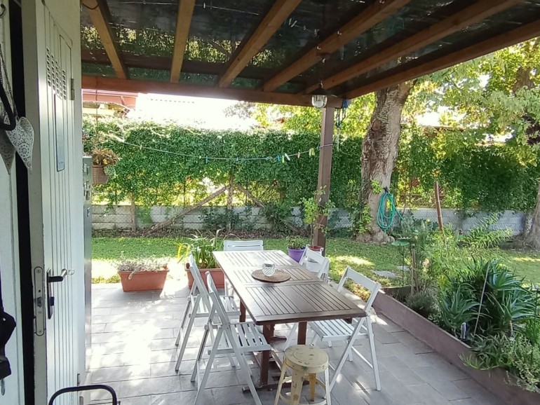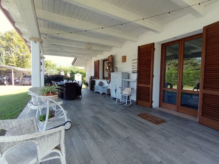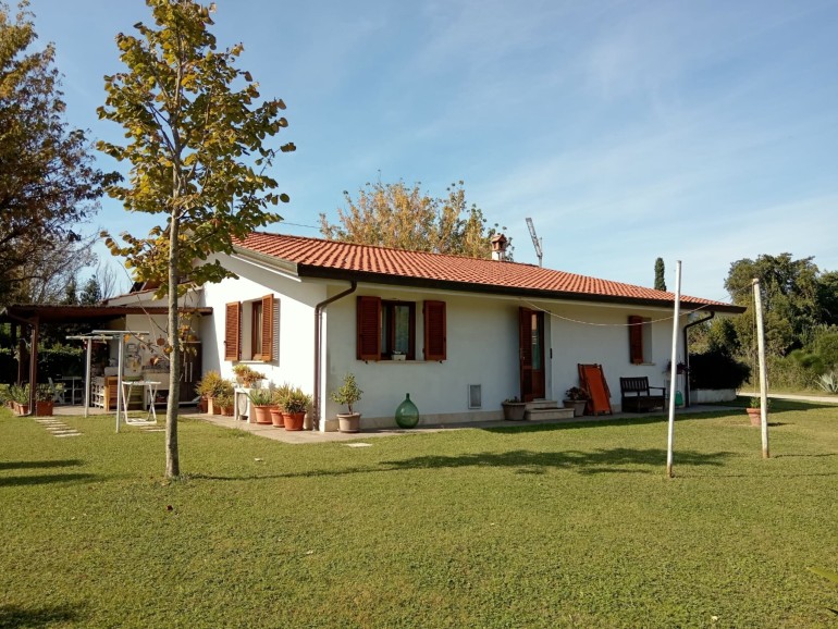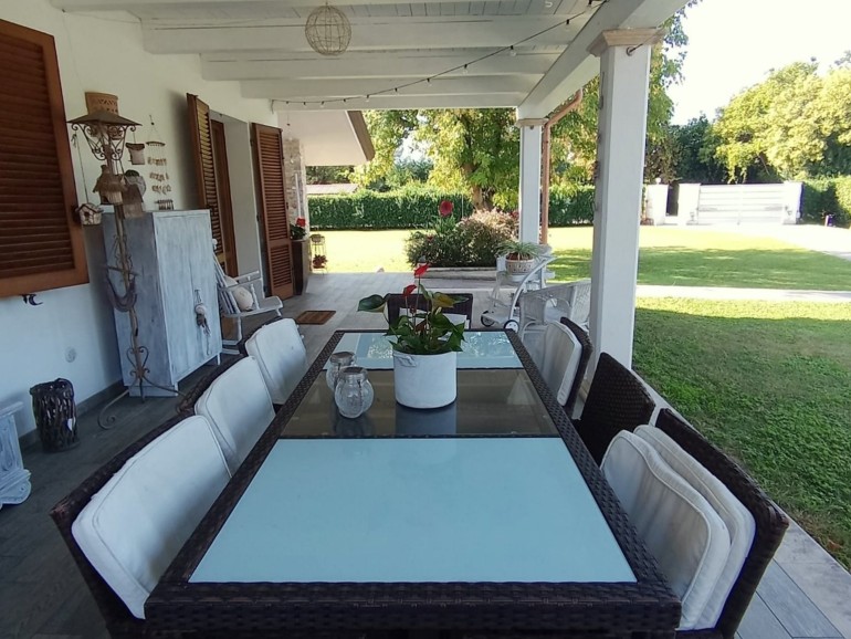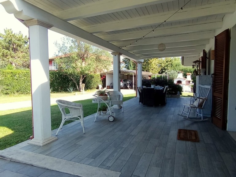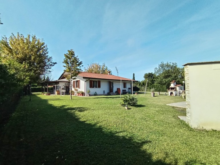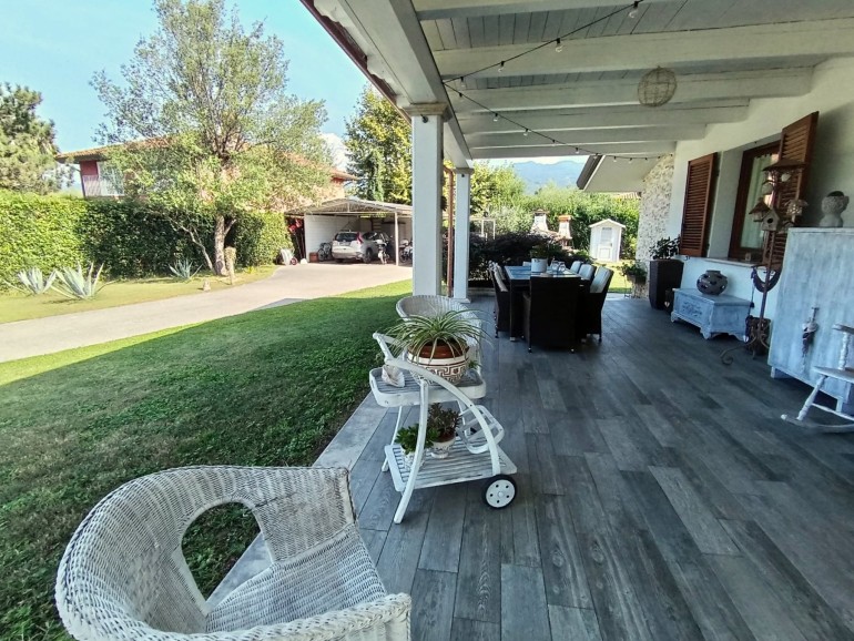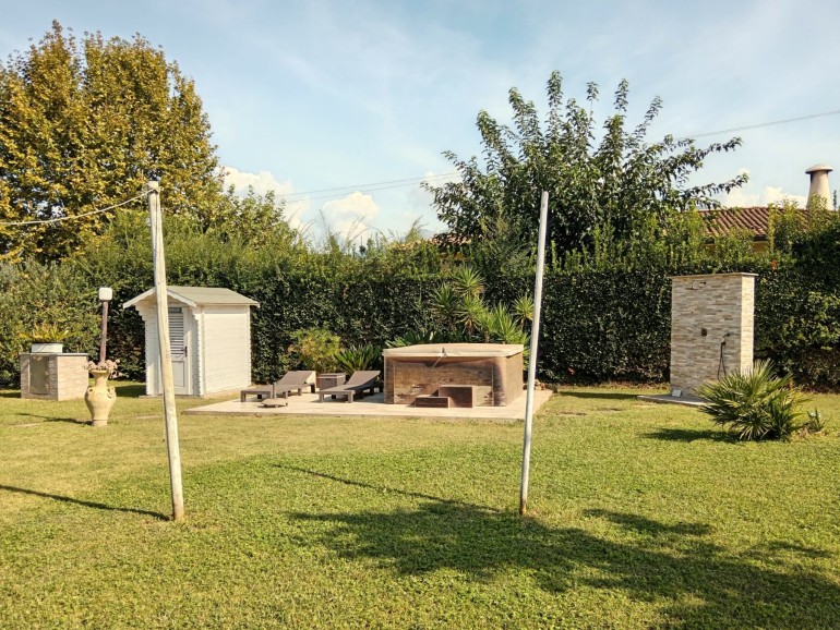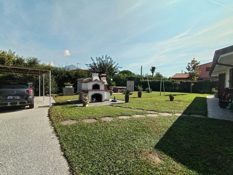Pietrasanta adiacenze Marina - A circa 1600 mt dal mare, su lotto di circa mq 1000, unità immobiliare monofamiliare elevato al solo piano terra per circa mq 120 composta da : ampia veranda/pergola sul fronte, ingresso, soggiorno- pranzo open con accesso al giardino, cucina con luminoso vano pranzo ed accesso a veranda/pergola sul retro, corridoio, 1 camera piazza e mezzo con bagno doccia privato, 1 camerina/ripostiglio, 1 ampio bagno con vasca, 1 camera matrimoniale. Unità corredata di tettoia adibita a posto auto.Riscaldamento a pavimento.Impianto fotovoltaico.Cappotto termico. Irrigazione automatica con pozzo. Nella proposta di vendita è compreso un lotto di terreno agricolo di circa 600 mt collocato di fronte all'unità.
