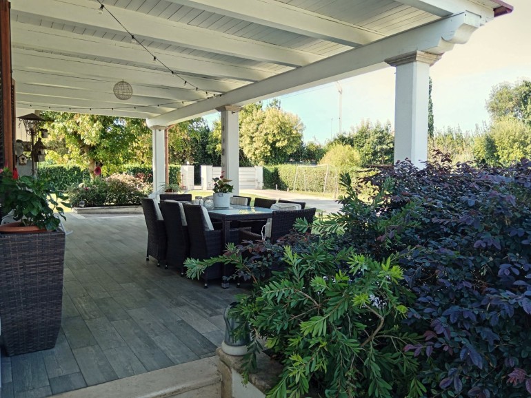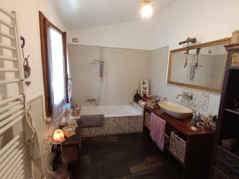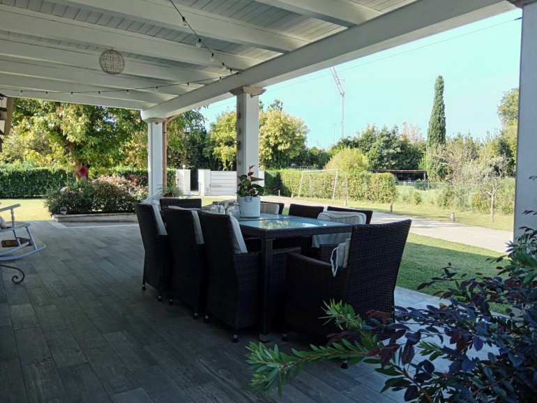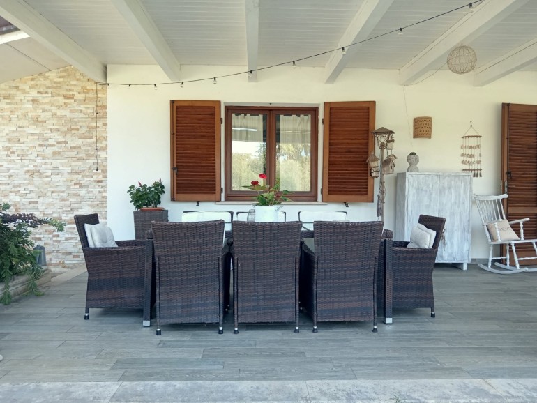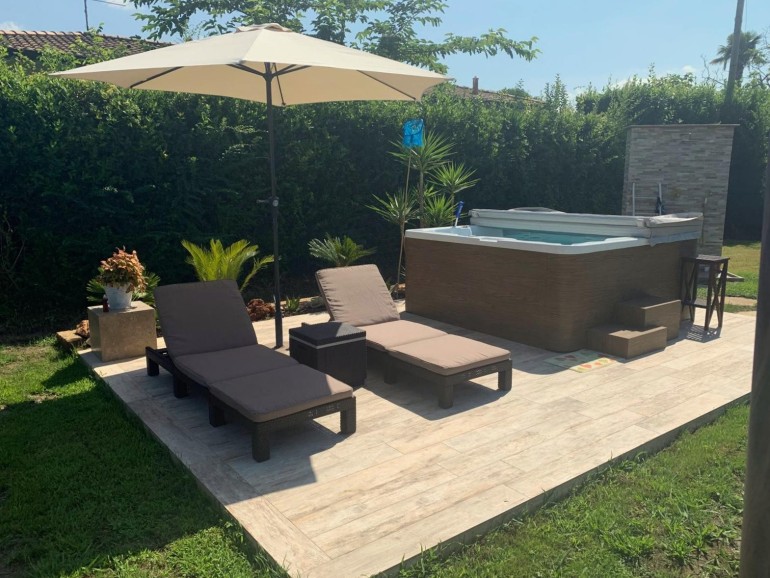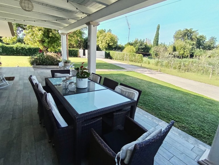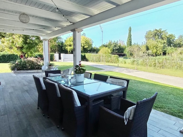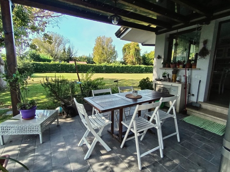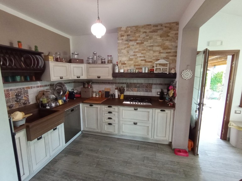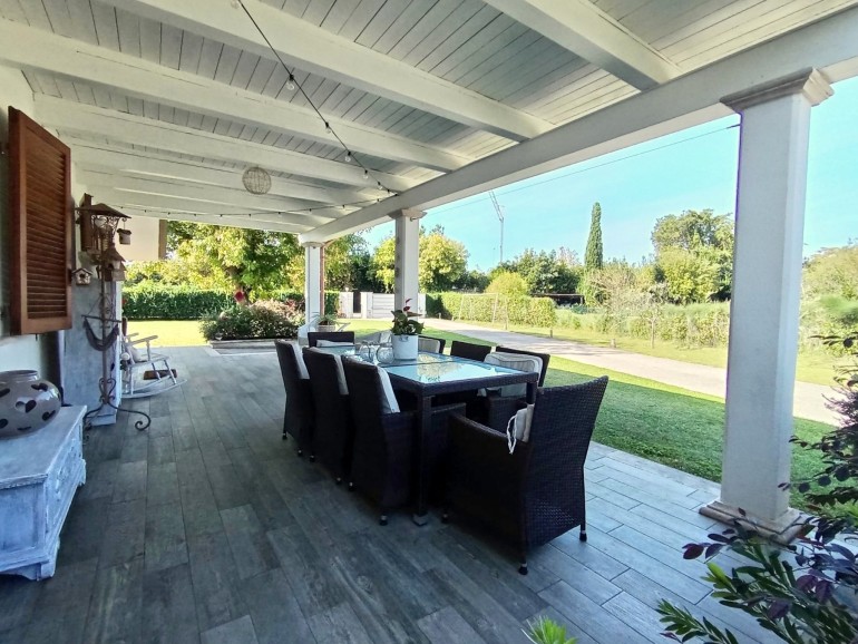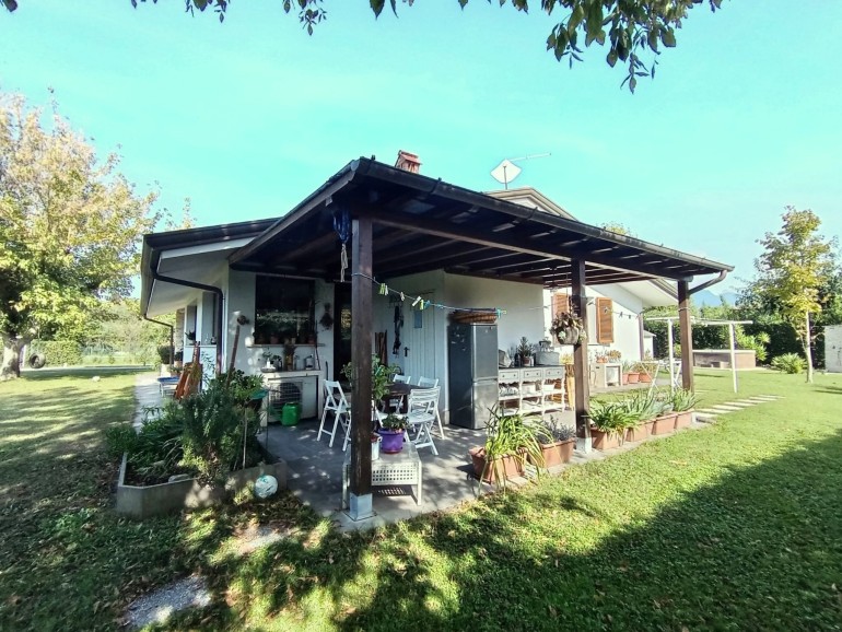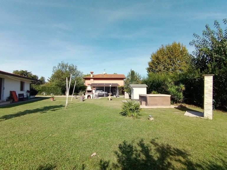 Pietrasanta adiacenze Marina - A circa 1600 mt dal mare, su lotto di circa mq 1000, unità immobiliare monofamiliare elevato al solo piano terra per circa mq 120 composta da : ampia veranda/pergola sul fronte, ingresso, soggiorno- pranzo open con accesso al giardino, cucina con luminoso vano pranzo ed accesso a veranda/pergola sul retro, corridoio, 1 camera piazza e mezzo con bagno doccia privato, 1 camerina/ripostiglio, 1 ampio bagno con vasca, 1 camera matrimoniale. Unità corredata di tettoia adibita a posto auto.Riscaldamento a pavimento.Impianto fotovoltaico.Cappotto termico. Irrigazione automatica con pozzo. Nella proposta di vendita è compreso un lotto di terreno agricolo di circa 600 mt collocato di fronte all'unità.