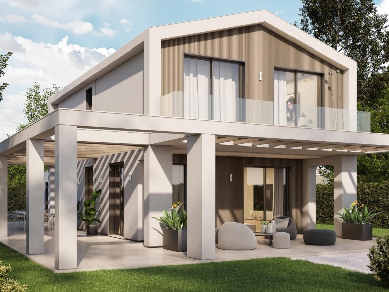 Marina di Pietrasanta - A 1700 metri dal viale a mare, su lotto di circa mq 1000,villa singola di prossima realizzazione elevata su due livelli fuori terra. L'unità, di mq 130 calpestabili è composta al piano terra da : luminosa zona giorno di mq 45 con angolo cottura ed accesso a portico/pompeiana di mq 15, una camera matrimoniale con bagno privato, antibagno, un servizio. Vano garage multiuso. Piano primo : due camere matrimoniali dotate di bagno e balcone privato, altra camera matrimoniale con bagno e terrazza privati.Possibilità di realizzare piscina. Posti auto. Impianto di domotica. Possibilità di personalizzazione degli ambienti interni e delle finiture. Pannelli fotovoltaici e riscaldamento con pompa di calore.Impianto di allarme. Si acquista da privato.Consegna prevista per l'estate 2026