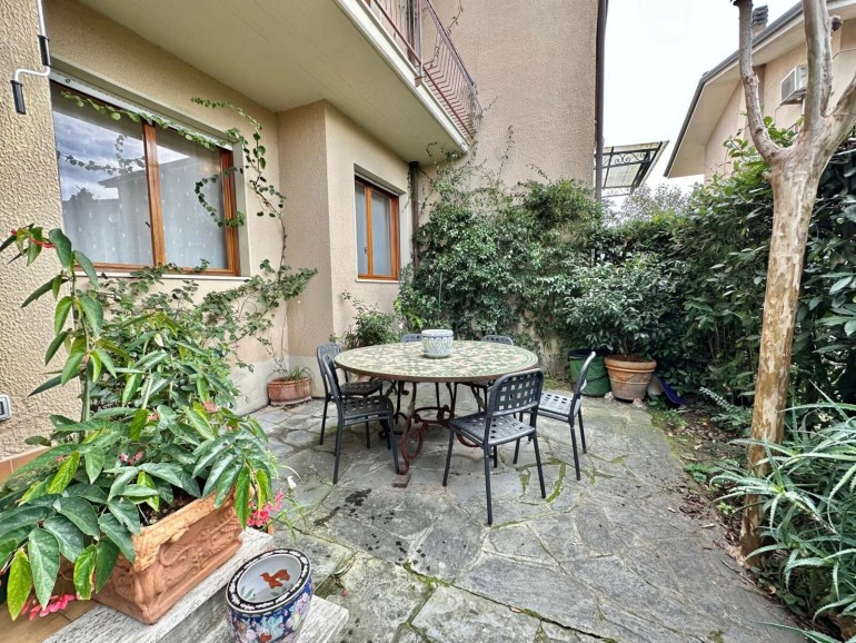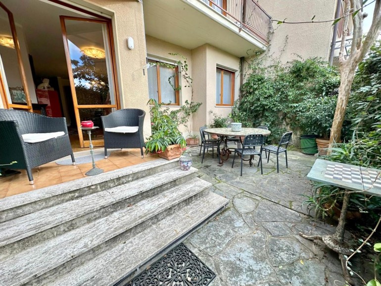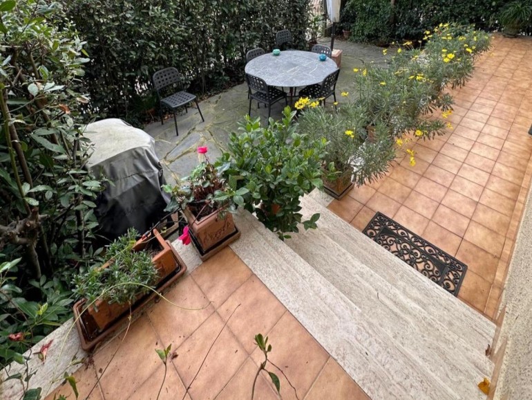 Marina di Pietrasanta - A circa 1300 mt dal viale a mare, in complesso plurifamiliare, villetta di recente ristrutturazione libera sui tre lati ed elevata su due livelli fuori terra oltre ad ampio vano soffitta. L'unità di circa mq 150 complessivi con comoda corte adatta a momenti di convivialità è composta al piano terra da ingresso, disimpegno, luminosa sala con camino e zona pranzo grazie alla quale si accede ad altra corte sul lato mare, nuova cucina abitabile con accesso alla corte lato monti, servizio di piano con finestra. Piano primo : disimpegno, camera matrimoniale e camera doppia che condividono la terrazza lato mare, altra camera matrimoniale con balcone privato vista Alpi Apuane, ampio bagno con doccia corredato di balcone adibito a lavanderia. L'unità è completata da ampia soffitta alla quale si accede tramite scala retrattile. Aria condizionata.Due posti auto coperti. Silenzioso contesto residenziale.Facile accesso a parco condominiale dalla corte lato mare.